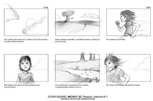 故事板在动画影片当中也具有重要的地位。例如Pixar的《the incredibles》(超人总动员),调整和观察故事板花了两年时间。这一步做得越多越详细,后面的步骤就越有指导越方便。
