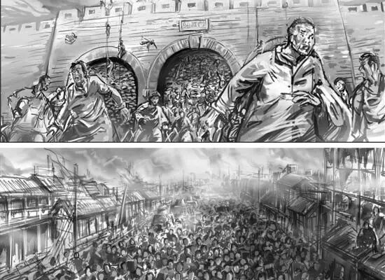 而国内也有十分重视故事板的导演,徐克就是其一。例如前段时间网上流传的徐克的手绘故事板就是电影《狄仁杰之通天帝国》的手绘图。 这么多年来,他始终保留手绘镜头的习惯,灵感来了就会画上几笔,《通天帝国》、《七剑下天山》、《蜀山传》等电影的手绘镜头都是无一例外地华丽漂亮。